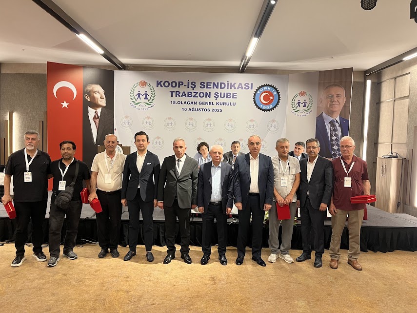 TÜRK-İŞ Genel Başkan Yardımcısı ve Koop-iş Sendikası Genel Başkanı Eyüp Alemdar konuşmasında: “Trabzon Şubemizin 15. Olağan Genel Kurulu’nda, büyük ve güçlü Koop-İş ailesi olarak değerli yol arkadaşlarımızla bir araya gelmekten büyük onur duydum. Koop-İş yalnızca bir sendika değil; örgütlenme, sosyal dayanışma, eğitim ve yatırım vizyonuyla büyüyen bir emek hareketidir.
